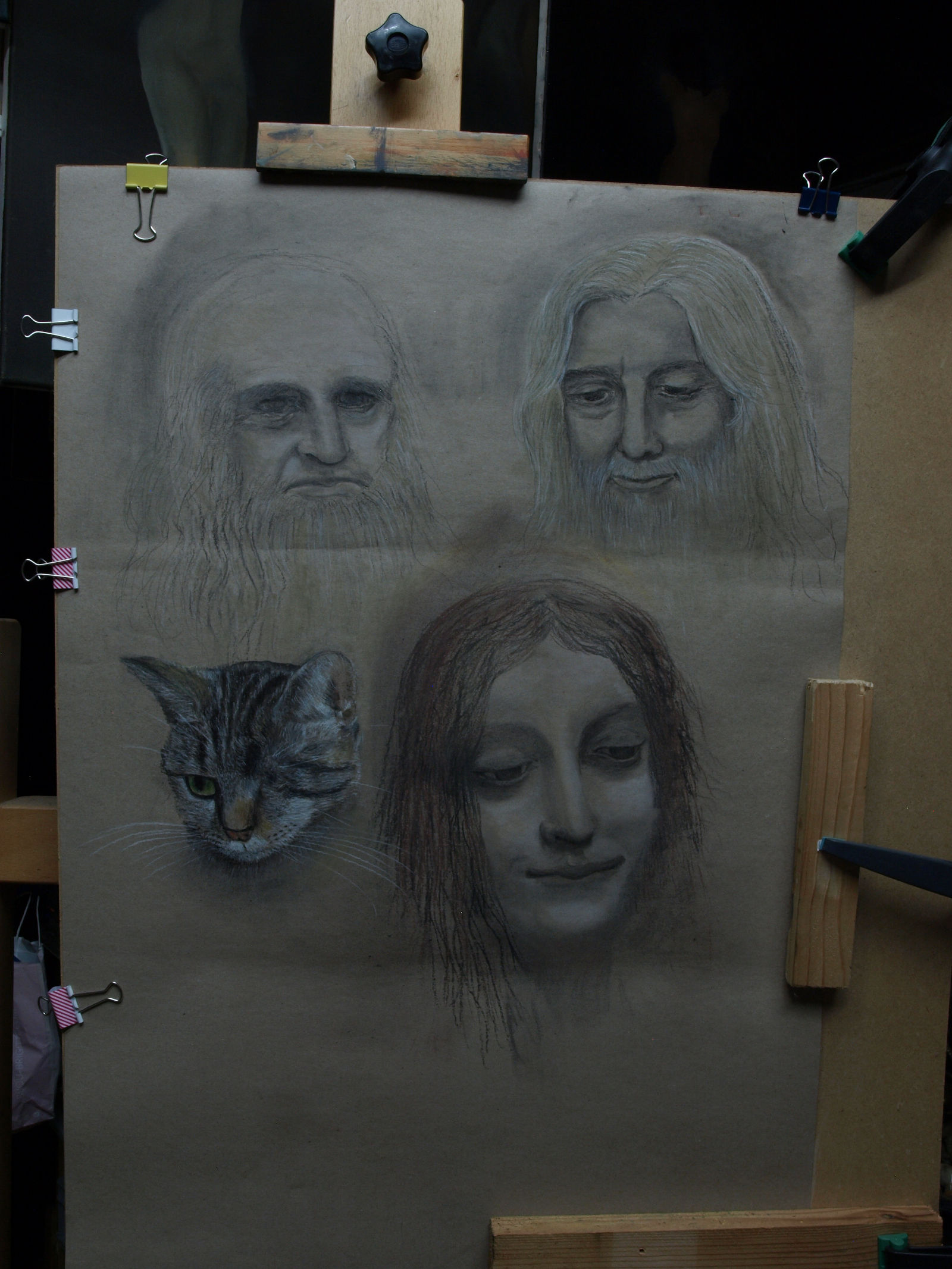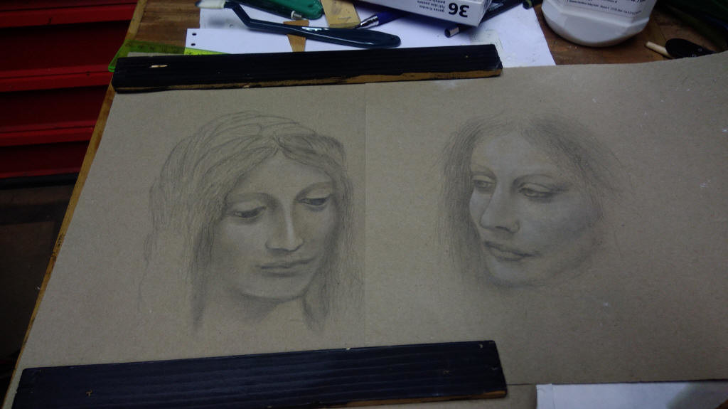 | Zeichnungen zweier Madonnengesichter - Kohle auf Packpapier | Kohlezeichnung auf Packpapier | |