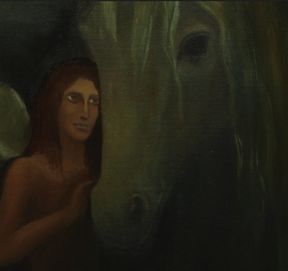 | Sphinx in mystischer Landschaft | Engel und Einhorn ( Detail des Ölgemäldes Rückkehr der Träume) | |